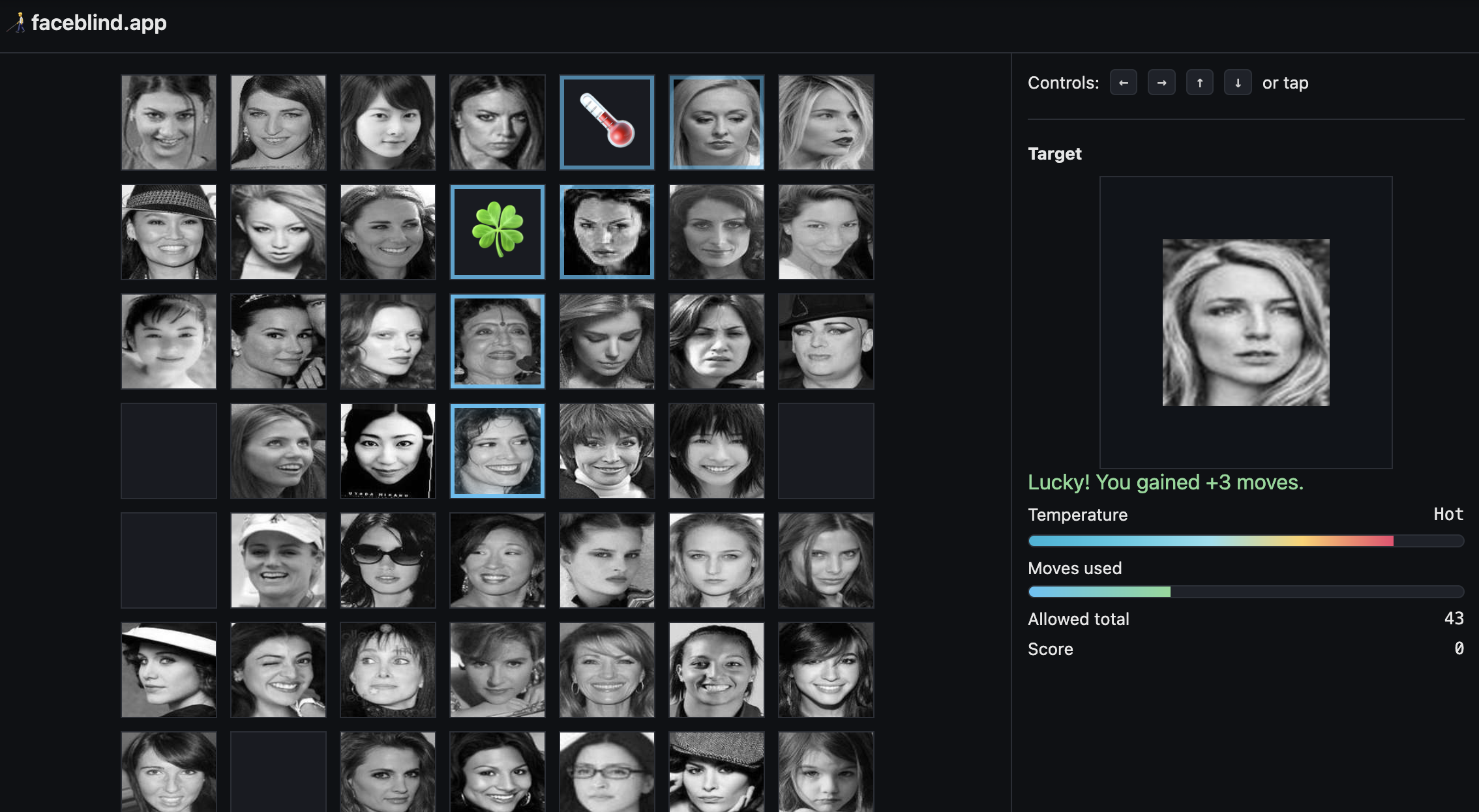 A tiny navigation puzzler in a sea of look‑alike faces. Follow subtle similarities to reach your target before your steps run out.